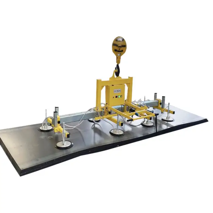 The dimensions of the Industrial Sheet Metal Vacuum Suction Cup Lifter are 2000 mm in length, 1000 mm in width, and it is designed to suit various industrial needs.