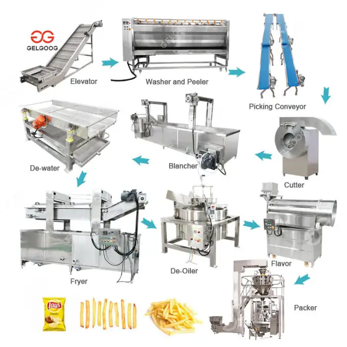 This machine can produce both French fries and potato chips from fresh potatoes.
