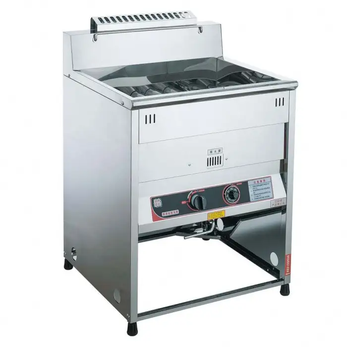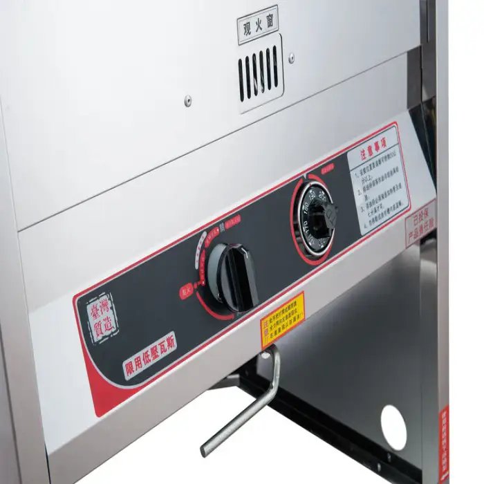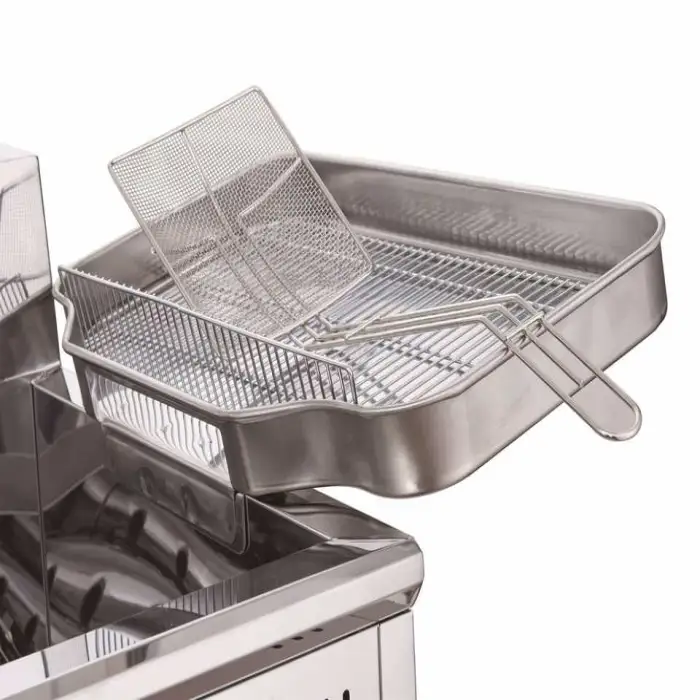 This fryer is gas-powered, which ensures quick heating and high productivity.