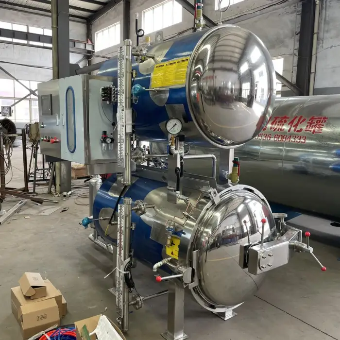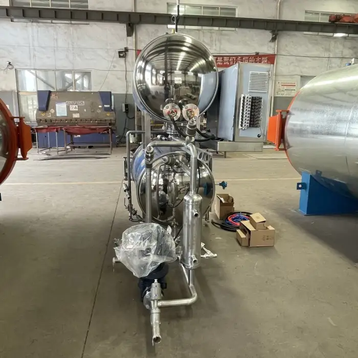 The autoclave is designed with high safety levels for food processing, ensuring that the sterilization process is effective and minimizes risks.