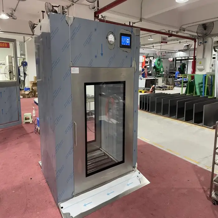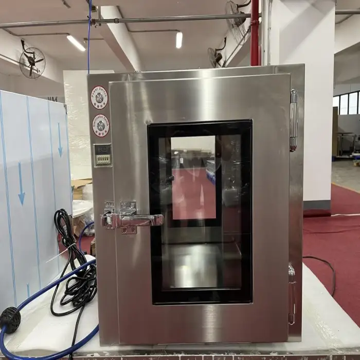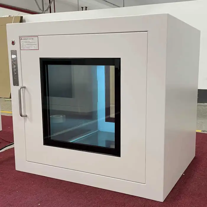 The pass box is constructed from cold rolled steel plate or stainless steel, ensuring durability and resistance to contamination.
