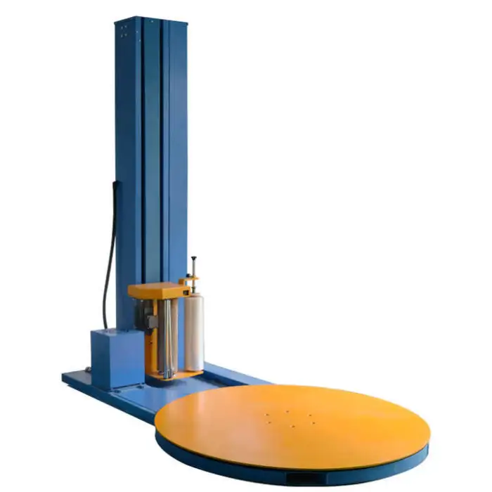 The primary function of this machine is to wrap pallets securely with stretch film, ensuring products are protected during transport.
