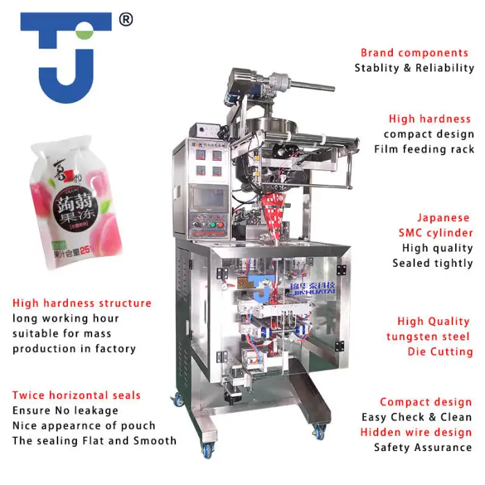 This machine is designed to package a variety of liquids and jellies, including konjac jelly, pudding, drinkable cheese, yogurt, and honey.