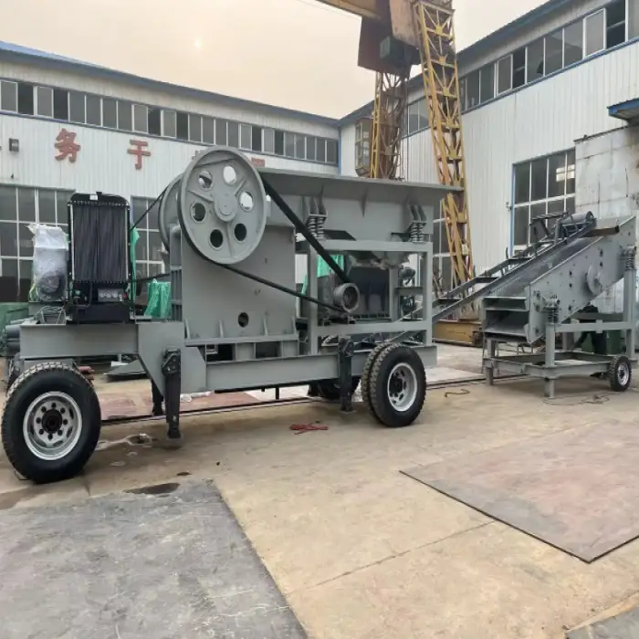 The Jaw Crusher is typically used for crushing granite and other hard materials in a mining or construction setting.