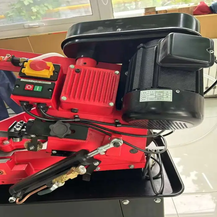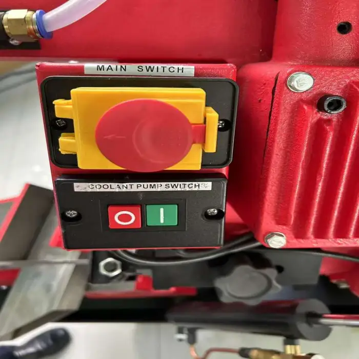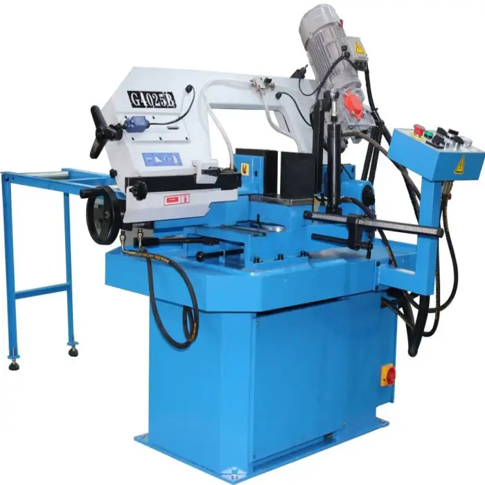 This machine uses a hydraulic saw blade tension method for consistent performance.