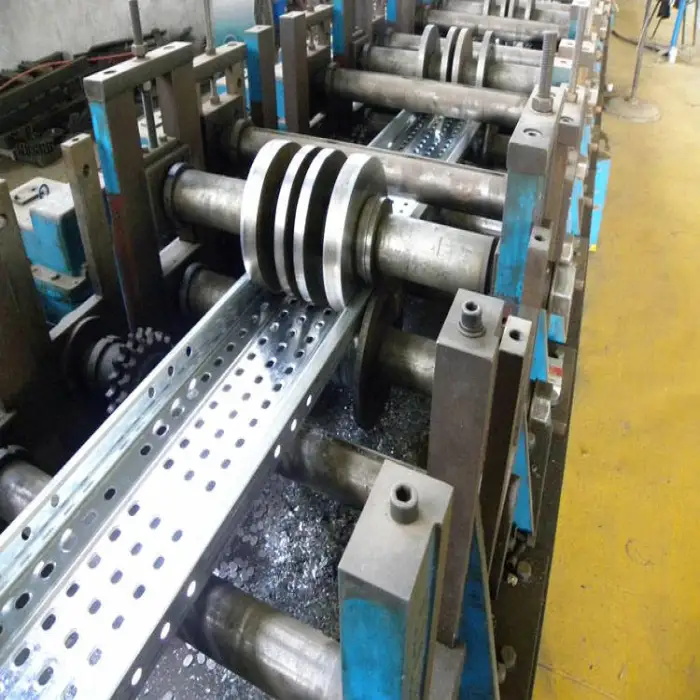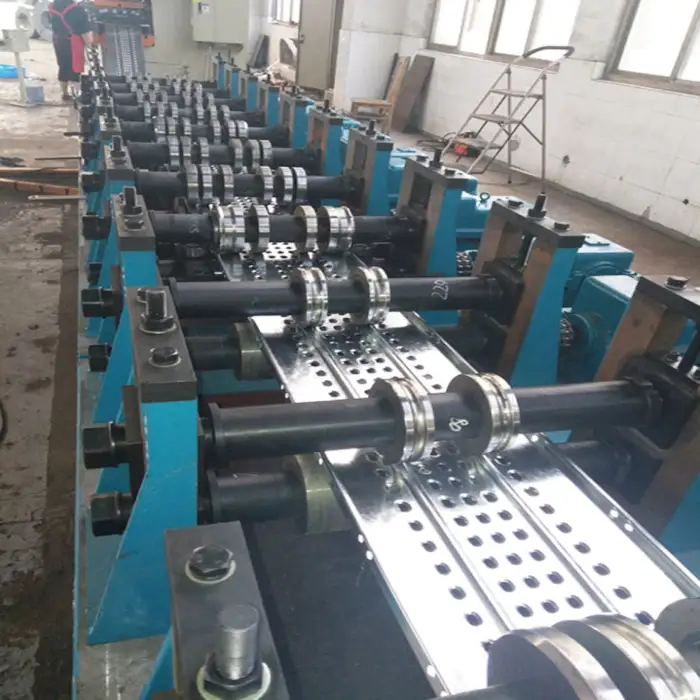 The machine is designed to work with galvanized steel for manufacturing scaffolding walk boards.