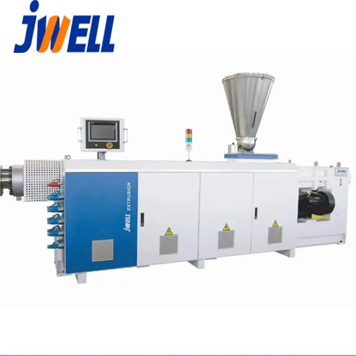 The JWELL-SJZ65 SJZ80 SJZ92 extrusion machine can process materials such as PVC, PE, and WPC.