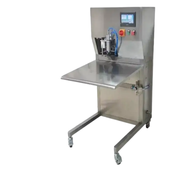 The machine comes in two sizes: 5 liters and 10 liters, allowing for versatility in packaging.