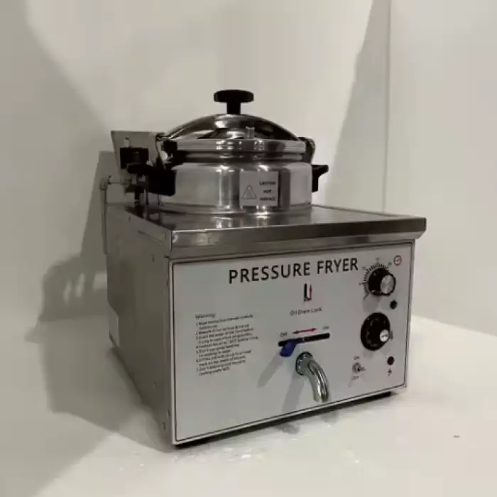 The product is described as a pressure fryer. Pressure frying requires following the manufacturer’s safety instructions carefully (secure lid, proper venting, release residual pressure before opening). Always read the user manual and follow local electrical and safety guidelines.