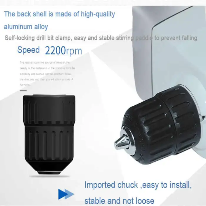 The mixer comes with a protective sleeve, safety buckle, and a non-slip mat for stability during mixing.