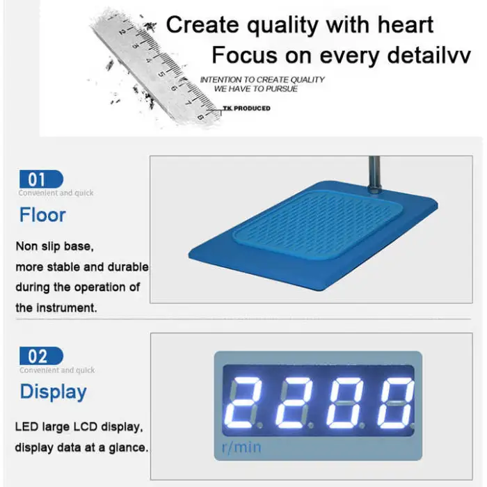 The mixer is designed for easy operation and adjustment with a clear LCD speed display.