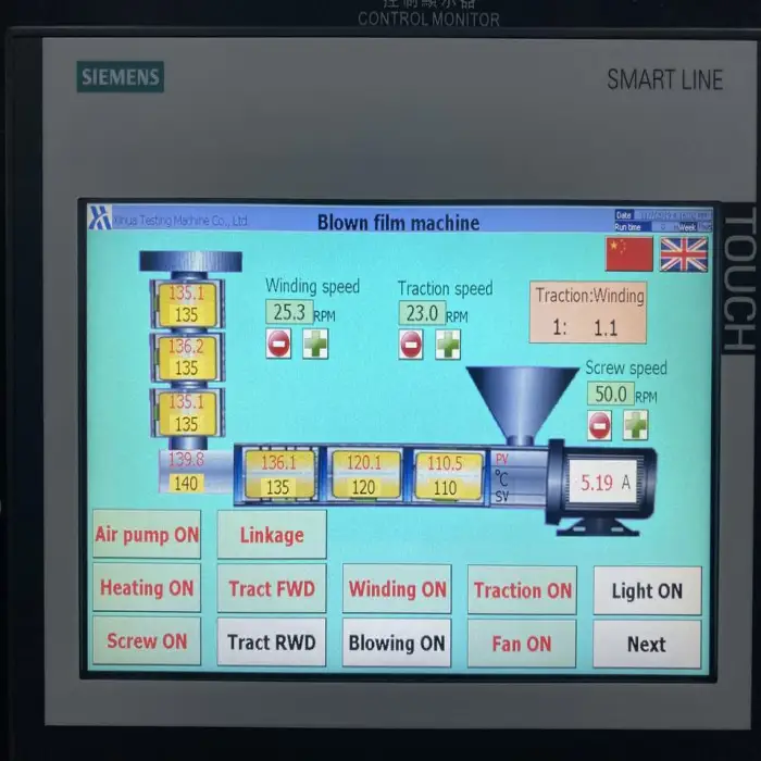 This extruder can produce a variety of films including packaging films for food products, plastic bags, protective covers, industrial packaging solutions, and agricultural films.