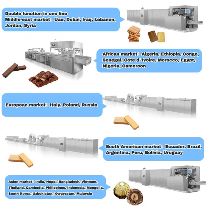 The machine is specifically designed for the confectionery industry, making it ideal for businesses focused on producing wafer biscuits and snacks.