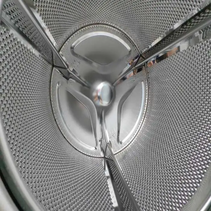 The washing machine is constructed from durable stainless steel, ensuring longevity and resistance to rust and corrosion.