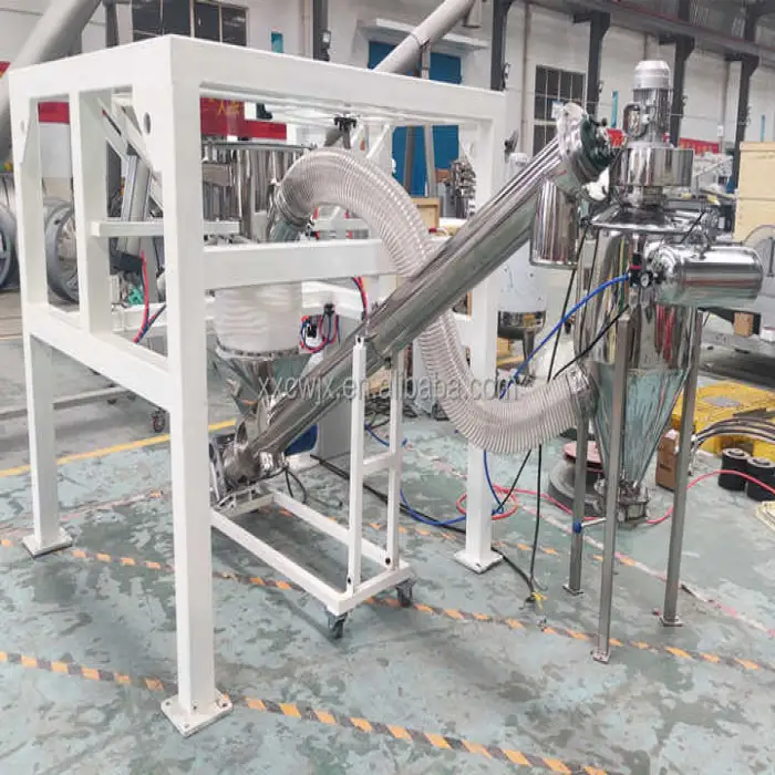 The machine is capable of discharging 1000kg FIBC bags, which are commonly used for bulk material handling.