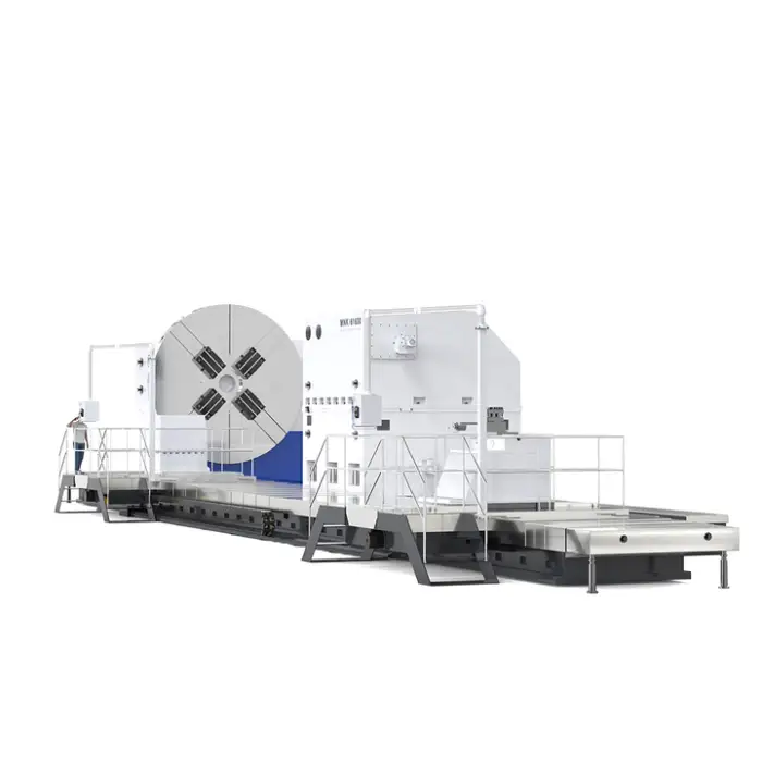 This lathe can accommodate workpieces with a maximum weight of 200 tons.