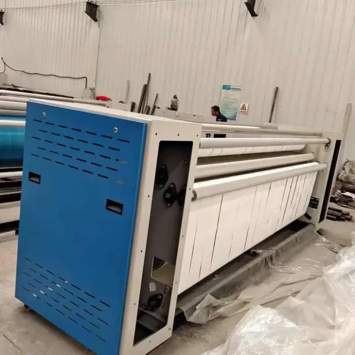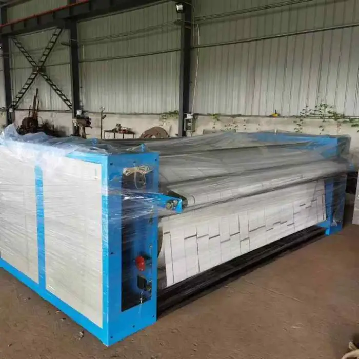This is a large commercial/industrial flatwork steam ironer designed to press and finish large textile items (sheets, tablecloths, linens) quickly and efficiently for commercial laundries, hotels, hospitals and similar operations.