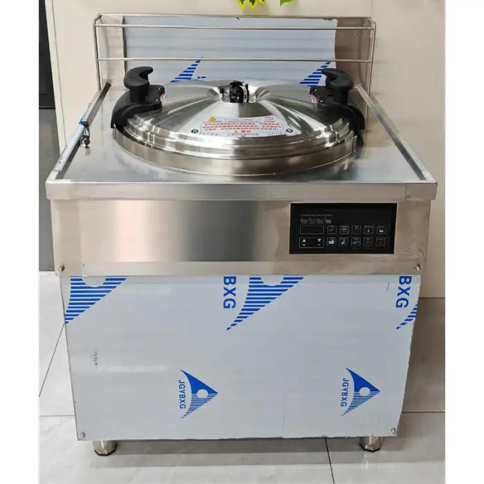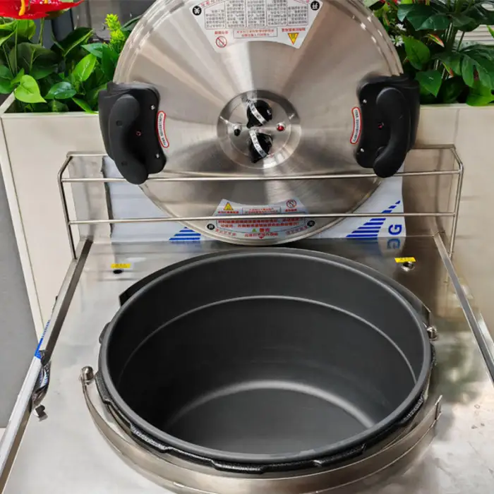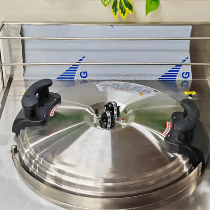 The cooker is available in capacities of 40 litres, 60 litres, 80 litres, and 100 litres.