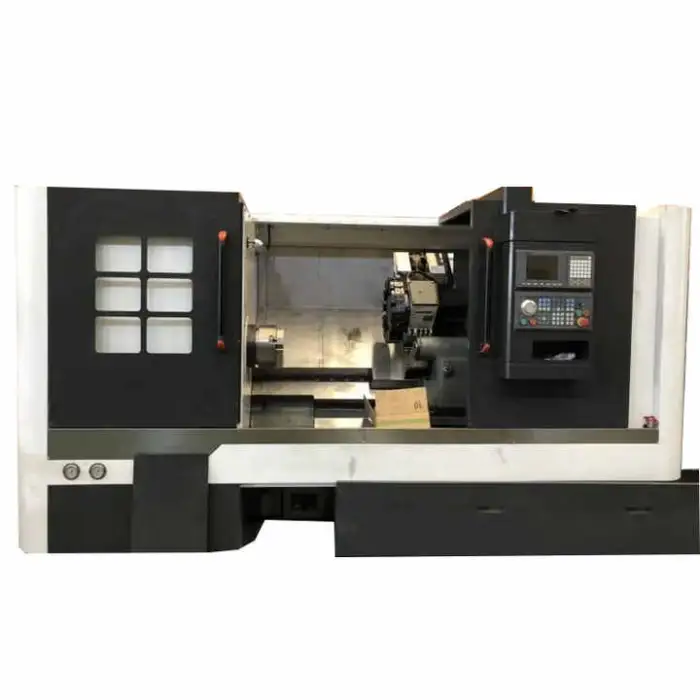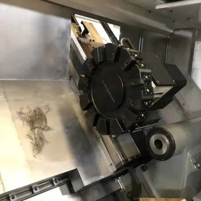 The machine is equipped with 8 tool post stations for versatile machining options.