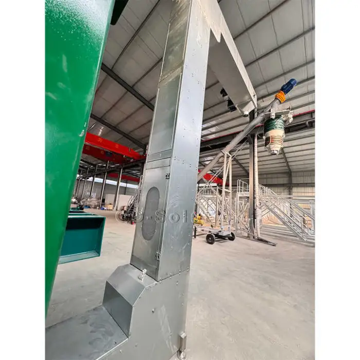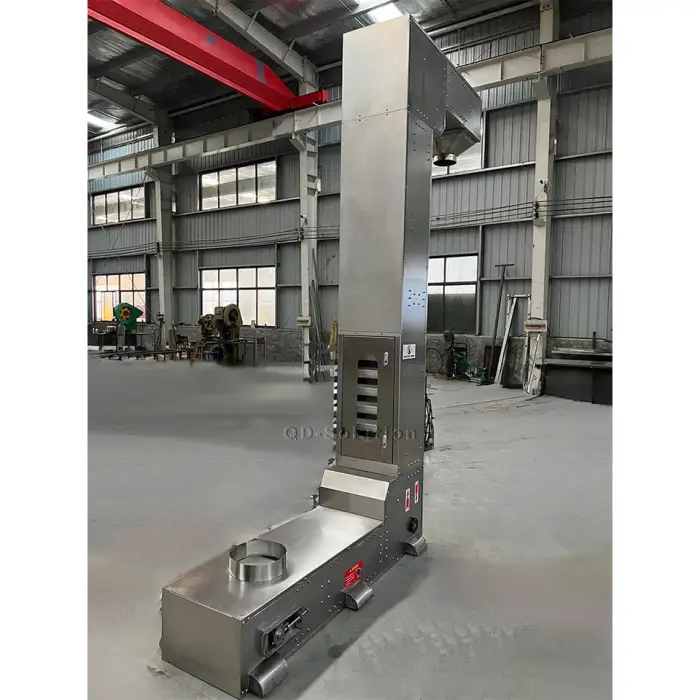 The bucket elevator is constructed from durable stainless steel, ensuring longevity and resistance to wear and tear in industrial environments.