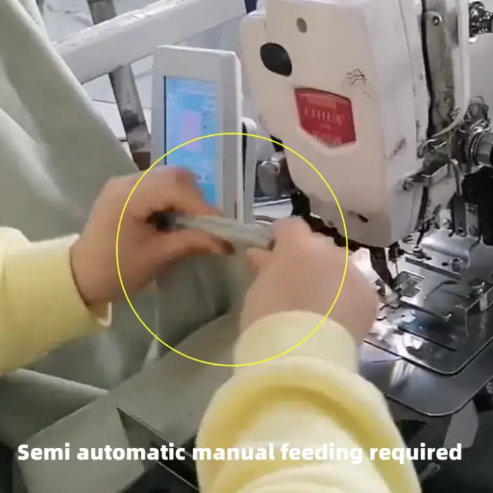 No, this machine features a semi-automatic operation, which means it requires manual feeding of the fabric, but it automates the pleating process.