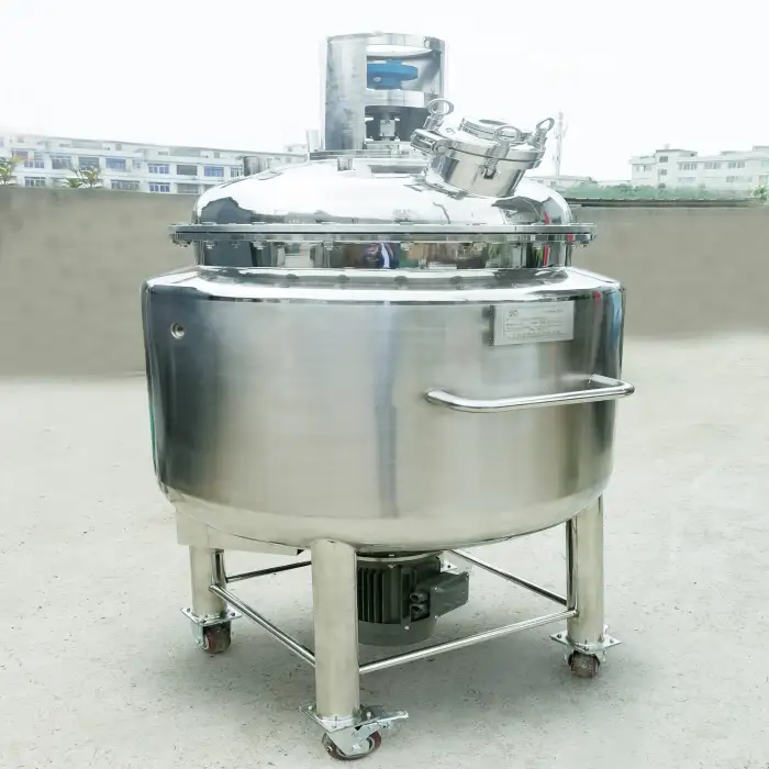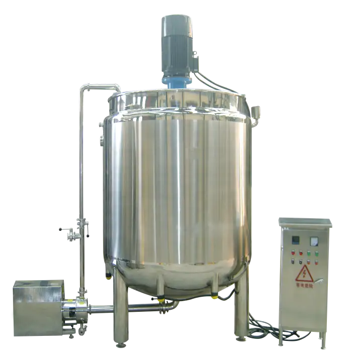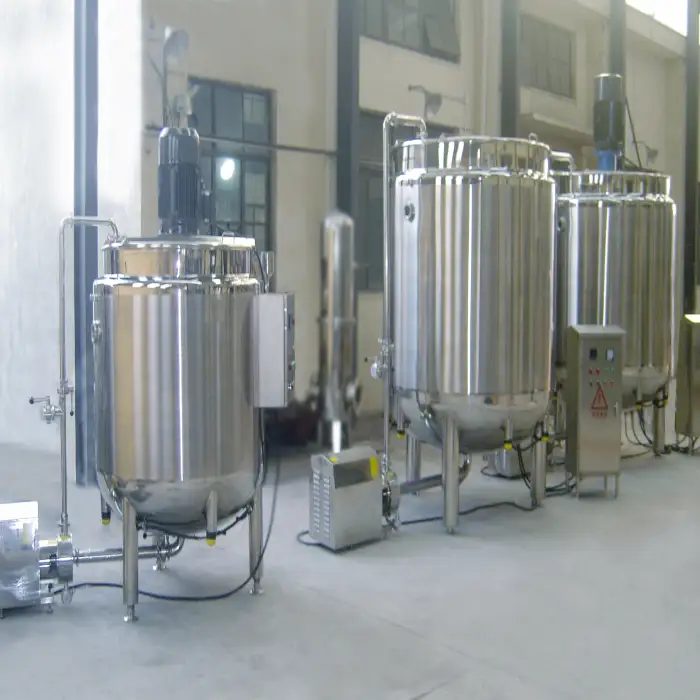 This mixing equipment is ideal for the food and chemical industries, particularly in the production of dairy products, beverages, fruit juices, and cosmetics.