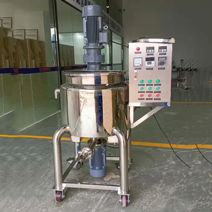 This machine uses a paddle mixer type combined with a high-speed homogenizer for effective blending.