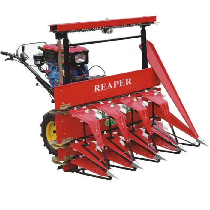The LOW Diesel Powered Mini Reaper is designed to efficiently harvest various crops including wheat, rice, corn, soybeans, and even grass such as Napier grass.