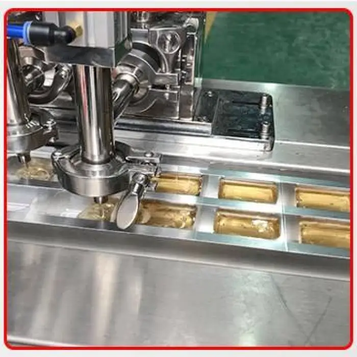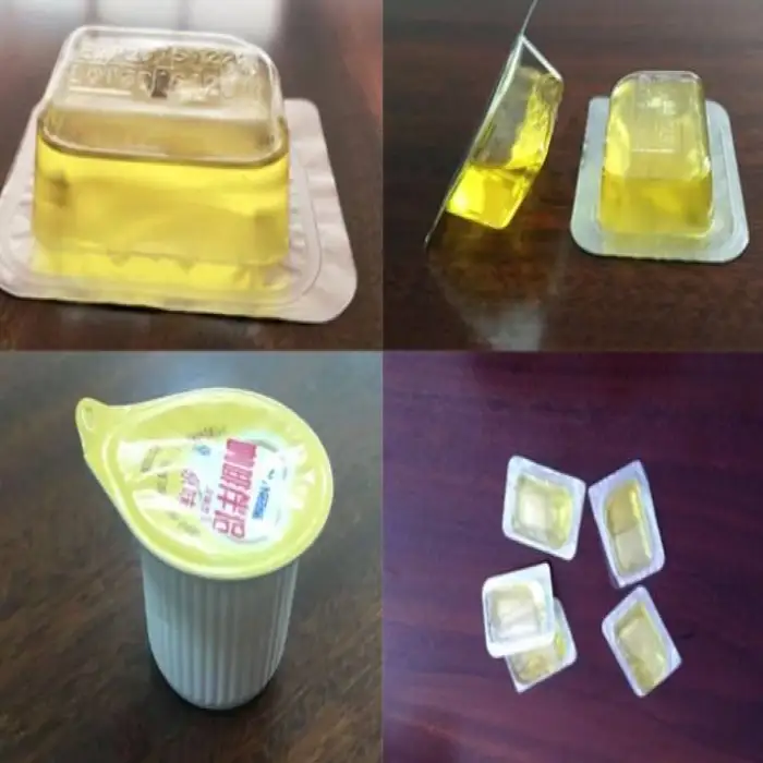 The LPMIE packaging machine can handle a variety of products including tablets, pills, capsules, ketchup, honey, sauces, cheese, chocolate paste, and peanut jam.