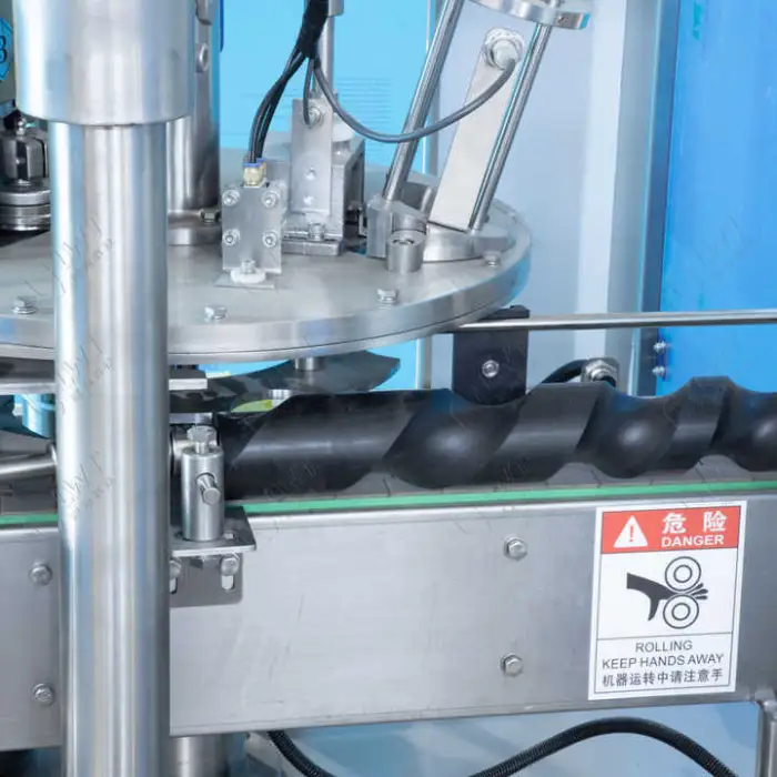 The equipment provides automatic can seaming (for metal cans), high-speed capping for bottles and sealing for foil-covered containers. Specific sealing methods and tooling depend on the model and configuration and can be adapted to your product.