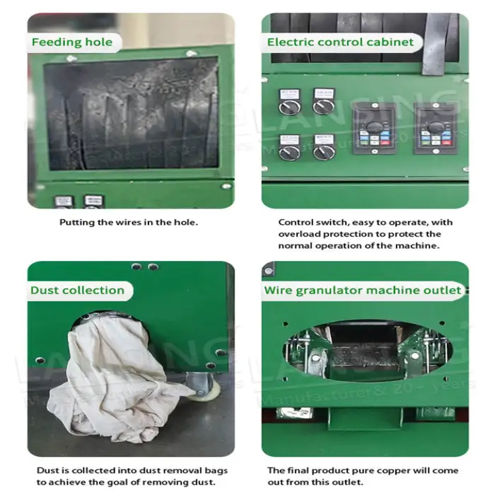 The LX-150 Mini Copper Wire Granulator Machine has a processing capacity of 40 kg/h.