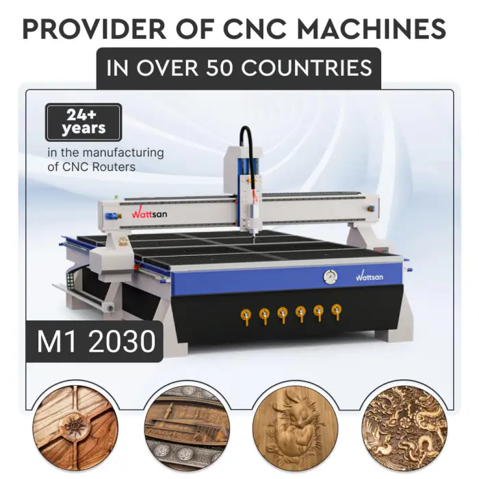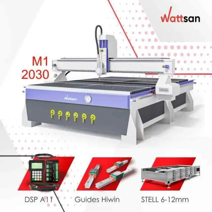The M1 2030 CNC Router Machine is designed to handle various materials, including wood and MDF.