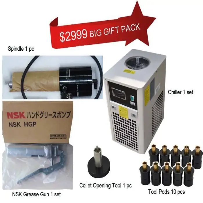 The spindle speed ranges from 50,000 to 60,000 revolutions per minute (r.p.m).