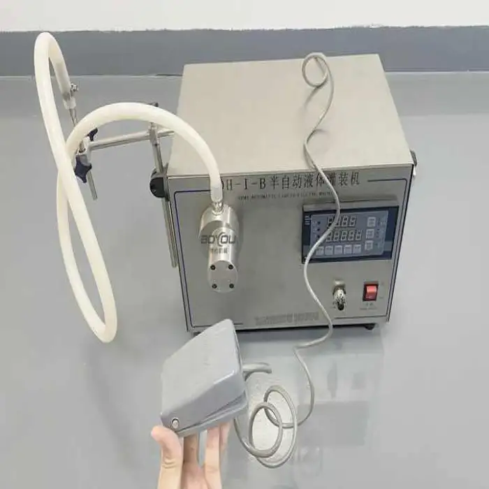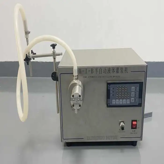 The Magnetic Pump Small Semi Automatic Filling Machine offers a filling accuracy of 99%, ensuring precise filling every time.