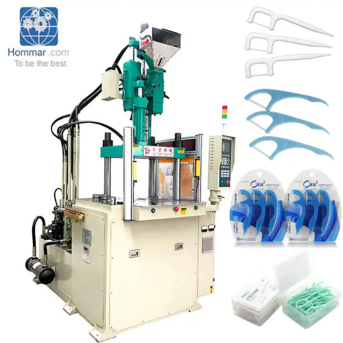This hydraulic vertical injection molding machine is designed primarily to produce dental floss picks and other small plastic items, particularly for eco-friendly product lines and small-to-medium scale production.