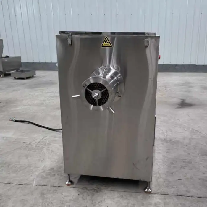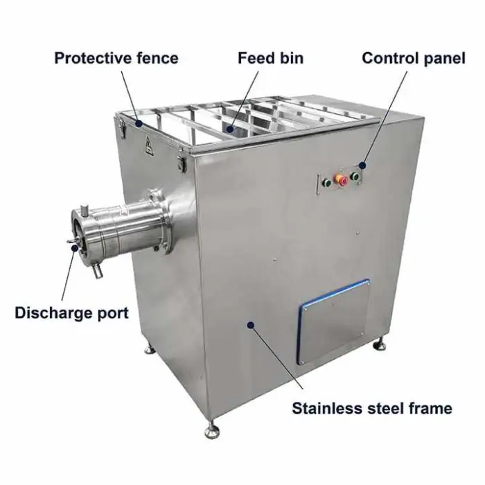 The machine has a production capacity of approximately 500–1000 kg per hour, depending on meat type (fresh or frozen), bone content, and operator settings.