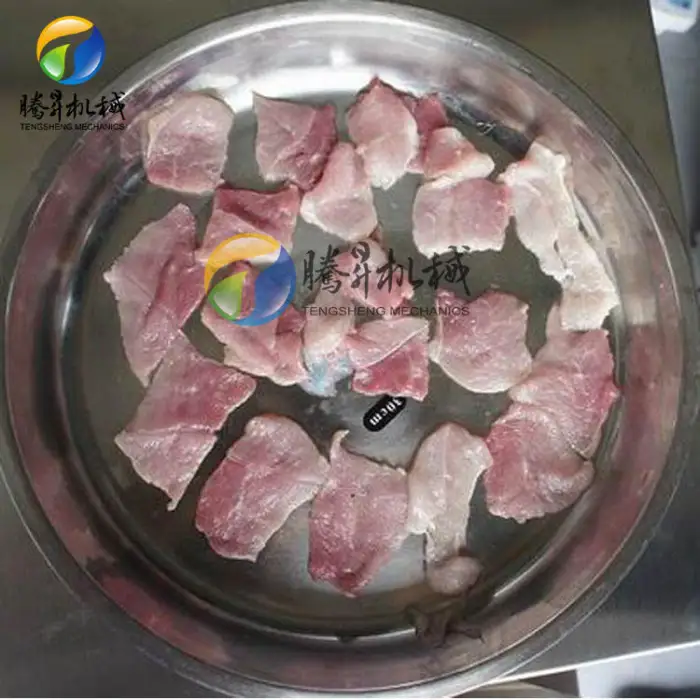 This industrial meat slicer is designed for various types of meat, including beef, pork, and poultry, making it suitable for restaurants and food processing industries.