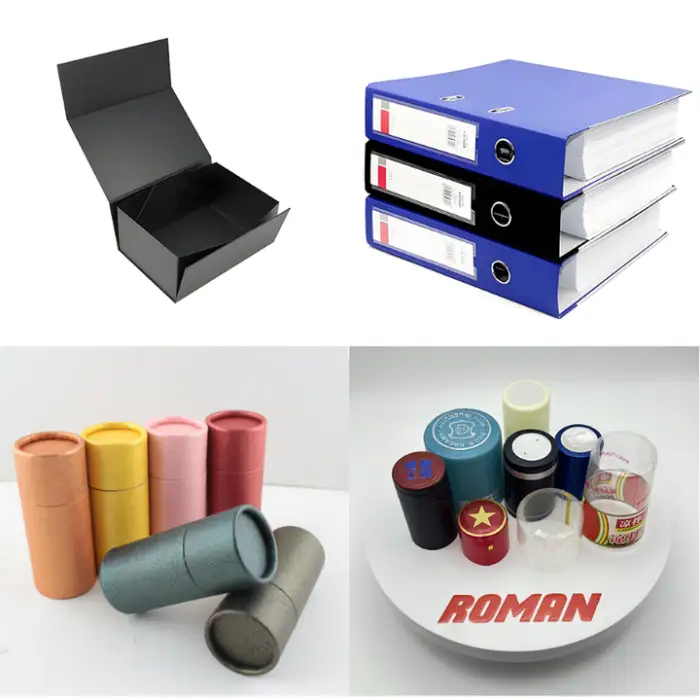 The machine is suitable for cardboard and paper, making it ideal for various packaging applications.