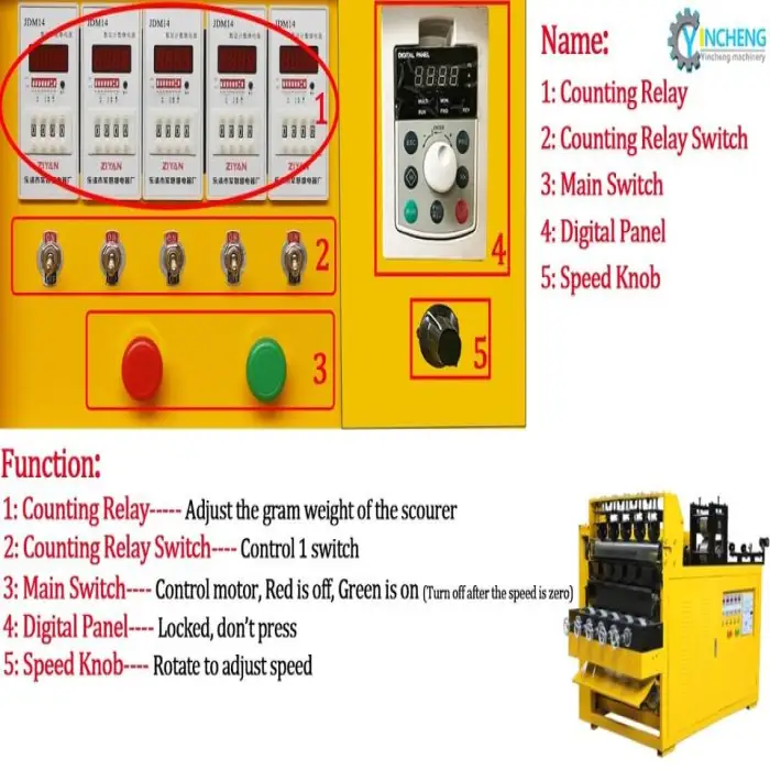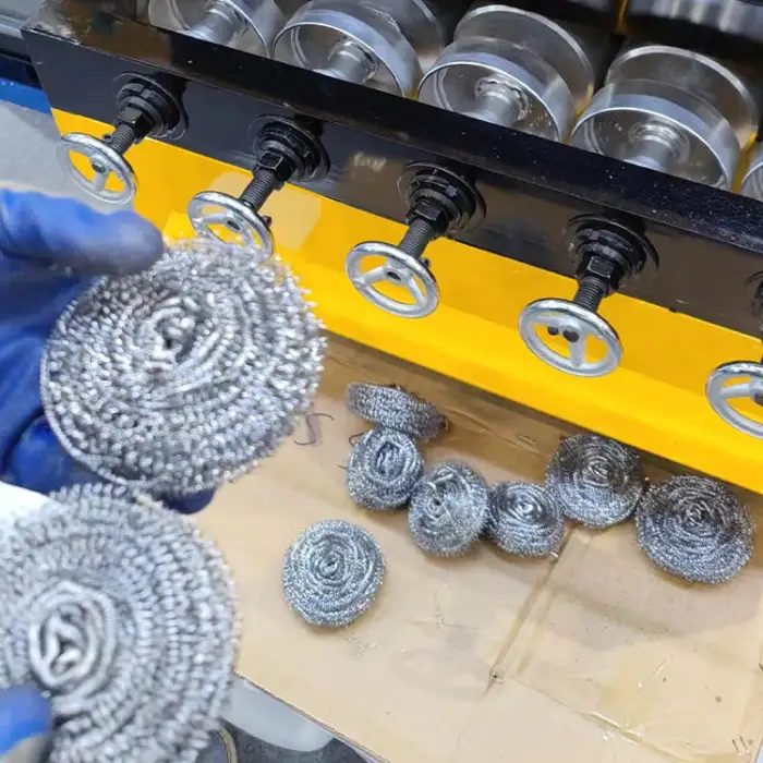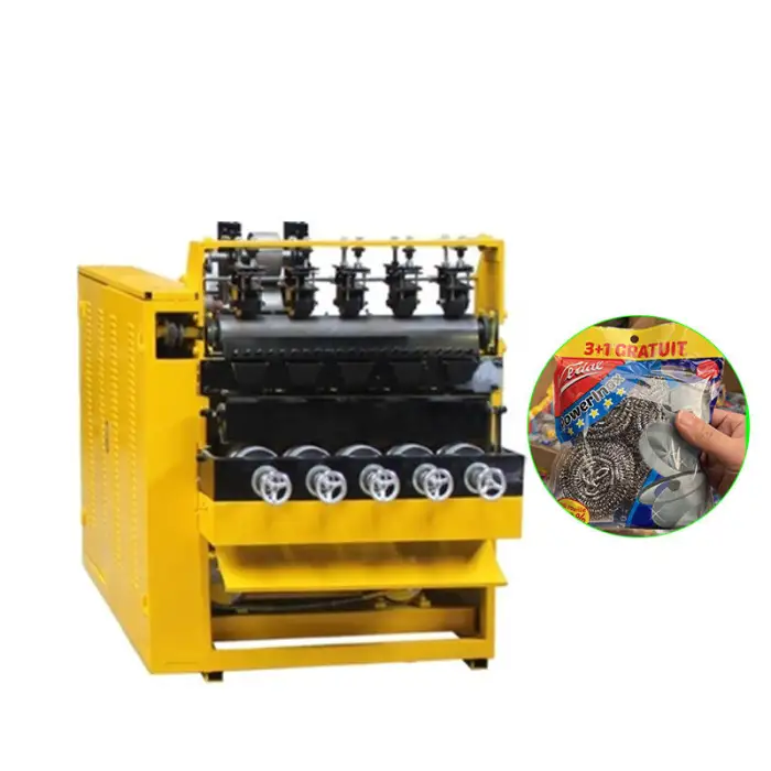 This machine is designed to efficiently produce high-quality steel wool scourers, suitable for dish washing and general cleaning purposes.