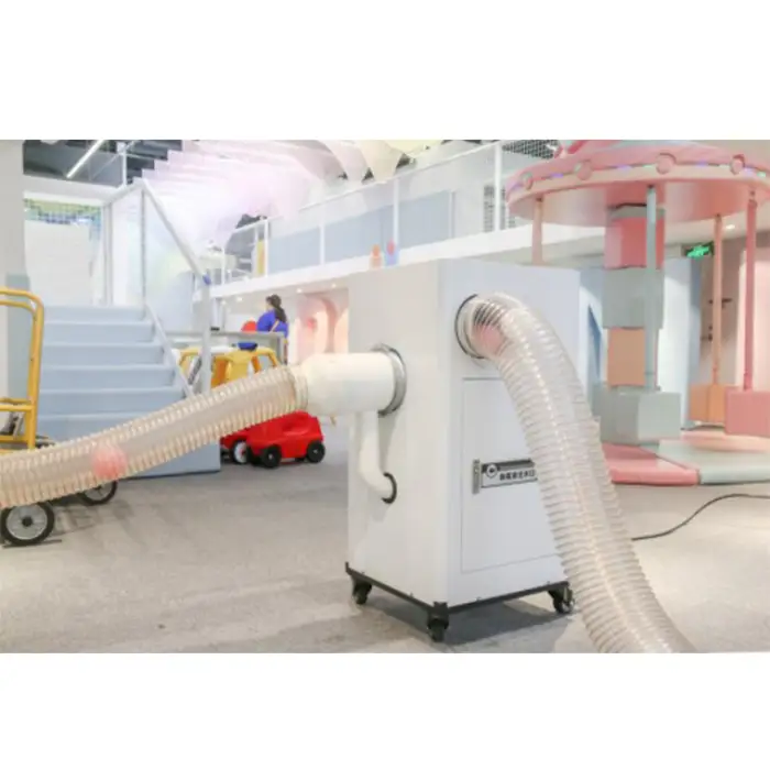 The Mini Ball Pit Washing Machine is a compact indoor cleaner designed to wash and sanitize play balls from indoor ball pits and playgrounds. It is built with a durable aluminum structure, is portable, and intended for use in shopping malls, hotels, residential playrooms and other indoor venues.
