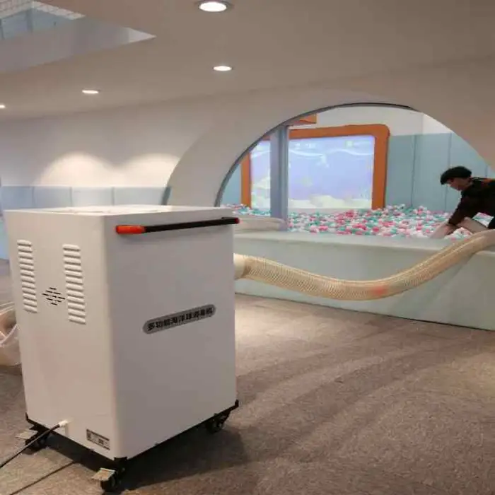 The MINI Ball Washing Machine is a compact cleaning machine designed to clean ball pool balls in indoor playgrounds, amusement parks, homes, schools and other play areas to help maintain a hygienic play environment.