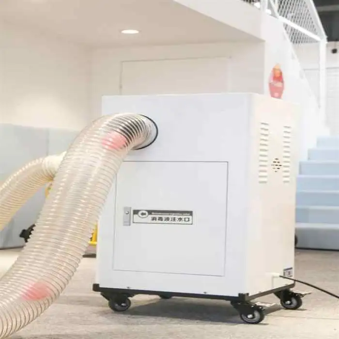 Always follow the safety instructions in the user manual. Keep children away from the machine during operation, ensure the unit is powered off and unplugged before servicing, and use protective equipment when handling cleaning chemicals.