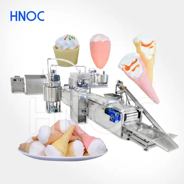 The main function of this machine is to produce cone ice cream and cotton candy, as well as fill marshmallow products with various fillings like fruit jam and chocolate.