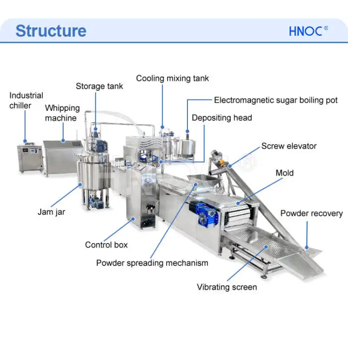 The production capacity can vary based on the specific settings and configurations used, but it is designed for high efficiency in candy processing.