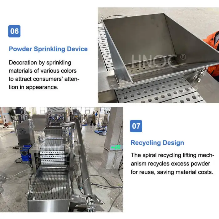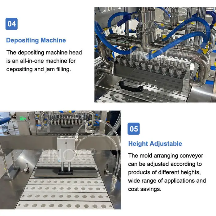 The machine features high-precision mechanisms that guarantee accurate filling and consistent production quality for all candy types.