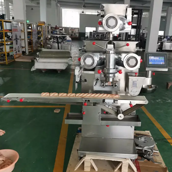 The Mini Single Hopper Coxinha Food Kubba Maamoul Automatic Encrust Filling Machine can be used to make a variety of snacks including kubba, churro, maamoul, falafel, kibbeh, tamale, meatball, cookie, and mochi.