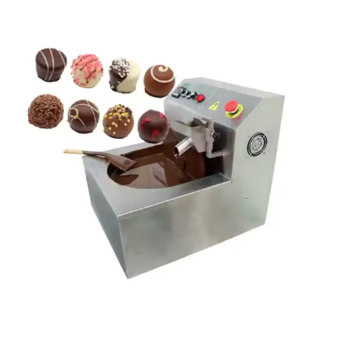 The Mini Type Chocolate Machine is a compact, stainless-steel unit designed for creating chocolate products. It is intended for small snack food factories, bakeries, beverage factories, home use, and small-scale chocolate businesses.