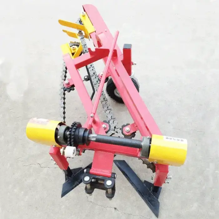 The Mini Walking Tractor Link Small Peanut Harvester utilizes a gear drive system for efficient operation.