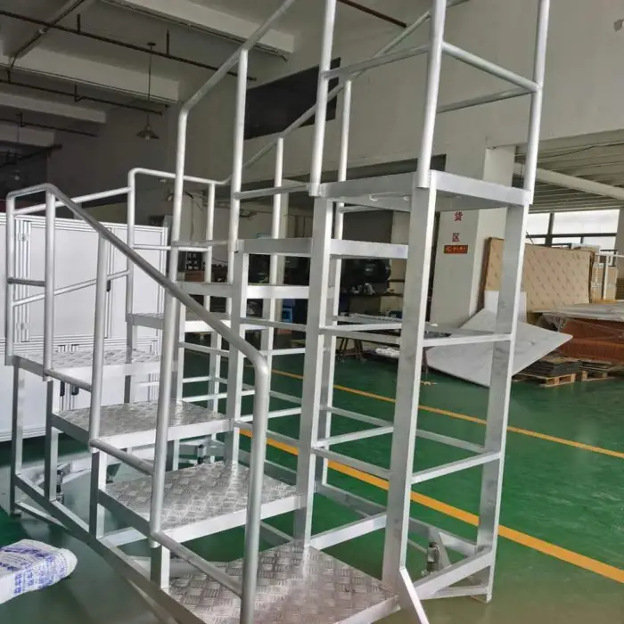 The platform is constructed from lightweight aluminum alloy, specifically 6000 series aluminum, which provides strength and durability.