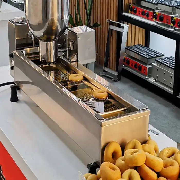 The automatic operation allows for high efficiency, enabling quick production of donuts.
